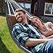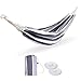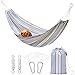 【PORTABLE AND EASY TO CARRY】The Woven hammock can be easily folded into a compact carrying bag,comes with two nylon ropes,100% polyester suspension offers exceptional durability with resistance to UV.It also equipped with 2 premium hooks.The whole package of hammock is probably smaller than a schoolbag,so you can take it to where you would like to go at any time,a free stylish carry bag for easy transportation,suitable using with universal hammock stand.