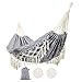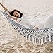 【COMFORTABLE&HIGH QUALITY】The white woven brazilian hammock is made of 80% sturdy cotton and 20% polyester colorfast density thickened non-fading fabric, hammock can be soft, breathable and skin-friendly,comfortable relaxation.Not only comfortable, sturdy and durable, but also last long.The Extra large size gives user a euphoric feeling of of laying on a soft sponge.Let you enjoy the leisure time every day.