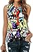 Floral Prints/Pleated /Scoop Neck/Button Down/Loose Fitting/Stretch Sleeveless Tunic Tank Top.