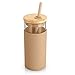 【Product Components】: Wide Mouth Beer Mug Set Includes 4 Colored Clear Glasses [Diameter - 2.95", Height - 5.86"], 4 Natural Bamboo Lid, 4 Reusable Glass Straws and 4 Cleaning Brushes, Very Practical combo set.