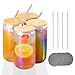 PRODUCT CONFIGURATION: Drinking glass set includes 4 can-shaped glass cups [ Diameter - 3 inches, Height - 5.8 inches ],4 reusable glass straws and 2 cleaning brushes, Classic design, Very practical combination suit.