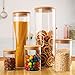 【Wide Use】: Glass storage containers are used for the storage of most ingredients, such as oatmeal, beans, flour, rice, coffee beans, biscuits, spices and seasonings, etc. Can also be used to store pet food. It can also be placed on the dresser, where cotton swabs, cotton pads, etc. can be placed.