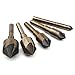 The counter sinker drill bit is a chatter-free, five-flute designed with staggered cutting teeth aranged to insure free chip flow and rapid chatter free cutting