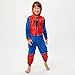 This blue and red onesie has a super cool Spider printed in the middle with a large web background