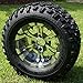 Includes: (4) New 23x10.5-12 All Terrain tires (4) 12"x7" Vampire GunMetal wheels (4) Alloy Center caps (chrome) (4) Sets of lug nuts to fit your cart (chrome)