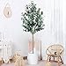 【Artificial Eucalyptus Tree Material】:Total product height: 6ft(71"). Weight: 8.7pounds. The artificial eucalyptus tree is made of PE material, which is environmentally friendly, soft and lifelike appearance. The interior is equipped with iron wire, fine workmanship, it can be used for a long time.Suitable for indoor and outdoor environments, giving a fresh and natural feeling around you.