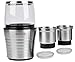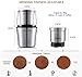 Comes with 2-removable stainless steel bowls. The Grinding bowl comes with 2-sharp stainless steel blades for coffee beans, grains, nuts, and spices