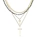 LAYERED NECKLACE DIMENSION:This minimalist 4-layered necklace consists of a snake chain choker necklace, 18 inch+20 inch cross pendant necklace. They are of different lengths so that saving you the trouble of matching, this gold necklaces are layered so you don't have to worry about tangles and knots.