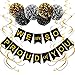 What you will get: 1 pcs Pre-strung black gold WE are SO PROUD of YOU Banner, 6pcs 10inch paper pom poms in 2 gold 2 sliver 2 black(need a little DIY), 6pcs hanging swirls in 3 gold 3 sliver
