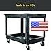 🔆 PERFECT SIZE AND STORAGE WEIGHT: This commercial-grade Tub utility cart overall dimensions is 34.4x16.7x32.5 inches (87.5x42.7x82.7cm) ; shelf size is 30.5x16.3x2.4 inches (77.5*41.5*6cm), 2.4”deep tub shelves makes sure your items are stable while moving. Rounded corners protect walls and furniture from dings; Offering 550 pounds of storage weight capacity 275 pounds for each shelf, perfect for the heaviest loads