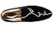 Velvet loafers from Santimon featuring black, gold-tone embroidery, velvet upper, floral & face appliqué, almond toe, piped-trim detailing and stacked sole