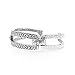 FEMININE FLOURISH – This gorgeous bangle bracelet by Sarda looks like three intertwined open rectangles that form a buckle design. The two outside shapes have a hammered finish and the middle features a chain-link pattern. The arm of the oval cuff has a kickback hinge. Choose from three sizes for the perfect fit. This high impact bracelet is perfect to wear with casual looks and for more dressy occasions.