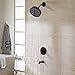 Black Look: T2903EPBL black bathroom shower faucet set replacement for moen gibson shower, has a matte black metal look that perfectly replaces old shower fixtures with a simple and stylish look to help update the look of your bathroom.
