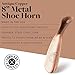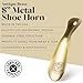 EASY TO USE ERGONOMIC DESIGN --- This 8 inch metal shoe horn features an ergonomic design for premium grip and seamless use. The design allows for your heel to effortlessly fall right into your shoes!