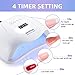 【Flexible 4 Timer settings and Hands-Free Auto Sensor】Transform your nail art routine to the next level with our UV light for gel nails. With four timer settings (10s/30s/60s/99s) and an automatic sensor, our nail lamp provides a customized drying experience while freeing up your hands. The auto on/off sensor turns the lamp on when you place your hands inside and off when you remove them.