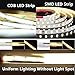 【Safety and 12VDC Powered】Like the normal 12V DC power flex strips, our 12V DC COB flex strips was made with more diodes with the PCB circuit. Please use a 12V output power supply with these strips. We can connect the led cob flex strip as long as 16.4ft (1 full reels) and powered at one end.