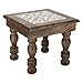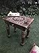 SIZE AND FORM : This is a hand carved piece of small table made of solid Wood. The top is square in shape, 12 inches on each side and has a height of about 10 inches. Since it is made of solid wood, it has good weight bearing capacity and will easily accommodate a fully grown adult standing on it consistently.