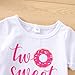 Features: 3Pcs baby girl doughnut birthday outfit, baby girl 1 year old birthday outfit, 3pcs short sleeve shirt shorts headband set, pink flared pants headband set.Stylish girls suit, short sleeves crew neck letter print T-shirt, fringed hem design, matching cherry cake print flared pants and headband, simple and stylish outfit.