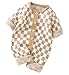 Popular Design: Baby girls Checkerboard knitted jumpsuit, round neck long sleeve button down baby romper with ribbed cuffs and bottoms, casual and fashion,warm.