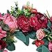 Material: Made of high-quality silk/foam flowers and silk greenery. Silk flowers include burgundy natural touch peony, navy blue Austin rose, navy blue and burgundy thistle spray flower, dark red hybrid tea rose, dark red poppy, and burgundy peony. Foam flowers include navy blue rose, burgundy rose, and navy blue high-centered rose. Accessories include turmeric dog's tail grass, holly fruits, ficus leaves, laurel leaves, eucalyptus leaves, and jewel floral pick.