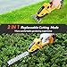 【SWITCHABLE BLADES & COMPACT】 2 types of blades available, 5" cordless grass shears handheld and 9" mini hedge trimmers cordless. 2 TOOLS IN 1, endow the cordless hedge trimmers with multiple capabilities that can complete the work to trim shrubs, mow lawn and suit the small garden that is inaccessible to large hedge trimmer.
