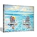 Beach Paintings on Canvas: Artful seascape canvas painting wall art is stretched and gallery wrapped over separate stretcher bar frames for a gallery-wrapped look, coastal paintings for wall is printed on canvas using fade-resistant inks