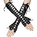Adjustable ribbons corset-like lace Elbow length black mesh fingerless long gloves