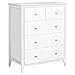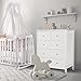 👕STURDY STRUCTURE:This chest of drawer consisting of durable engineered wood with white paint and quality hardware to ensure a long service time, no odd smell,High quality waterproof surface treatment, easy to clean and maintain, durable. easy pull round handles to make opening and closing smooth,wooded feet to protect floor from scratches.