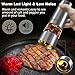 LED light & Low Noise - No more cheap white light or unclear blue light, our electric grinder comes with a warm LED light that is bright and gentle, the pepper mill doesn't exceed 60 db when used, adding a warm and romantic atmosphere to your family or loved ones. The light will automatically turn on. Which helps to prevent the food from being over-seasoned.
