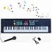 Electronic music keyboard MULTIPLE FUNCTIONS: Piano keyboard USB power supply and battery supply / English instruction / Microphone / USB DC cable / 16 kinds of timbre / 8 kinds of percussion instrument recording / 10 kinds of rhythm / 6 demos / 61 black and white keys/ Piano mat comes with Record, Playback, Demo, Play, Adjustable Vol.b.