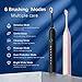 【6 Modes & USB Charging】The toothbrush has 6 modes: sensitive, gentle, clean, massage, gum protection and bright white, suitable for different mouths and gums. The electric toothbrush adopts a USB charging design, compatible with any charger or with USB The interface device can be used for 60 days when it is fully charged!