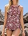 Shoulder Straps Bathing Suit --- High neck red and printed pattern tankini swimsuit with adjustable straps