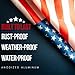 Large American Flag: Designed with light flyability and reinforced polyester header for additional durability. It has heavy-duty brass grommets and a quadruple-stitched fly hem for long-lasting use and outdoor weather.