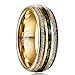 Design: 8mm men's gold tungsten ring combined with silver meteorite and green opal,simple and stylish. The ring adopts the dome comfort polishing design, which is not only full of luster, but also provides you with a better wearing experience.