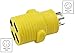 Male Plug: 30 Amp, 125 Volt 2-Pole, 3-Wire RV use only. Attaches to pedestal receptacle or cordset - Female Connector: 30 Amp, 125 Volt Locking. Attaches to RV inlet or cordset.