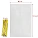 【HIGHLY-EFFICIENT SUITE】Crystal clear 8x11 inches/20.5x28 cm bags(x50) and 4.7 inches gold twist ties(x50) contribute to a convenient and comprehensive buy choice for gift/food wrapping plan. Make sure the right size you really need before buying.