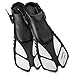 Fins: Compact Travel Size Design, Dual Composite Construction: Rubber & Plastic, Maximum Propulsion with Minimal Effort, Soft Rubber Foot Pocket w/Open Toe, Adjustable Heel Strap with Pull Tab for Easy On/Off