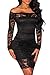 Off the Shoulder Dresses for Women Vintage Lace Wedding Cocktail Slim Fitting Mini Dresses with Sleeve