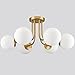The 6-light sputnik semi flush mount light fixtures crafted from globe off-white manual blown glass ,combination of electrophoresis brass gold metal finish.It can reflect the sparkling and even lighting ,adds more chic and luxury feeling .The durable material can avoid rust for a long time used.