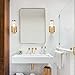 【Modern Design】The modern vanity wall light fixtures featured with cylindrical clear glass shade with electrophoresis brass gold finish ,creates modern and stylish feeling.Suitable for classical vintage modern style decoration in your space.