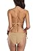 The halter-neck style and solid colors look great against your striped beach towel. Low back design offers simple, flattering style.