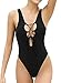 A vintage style one piece swimsuit feature deep V neck and lace-up details at front, U back detail and adjustable tie provides a personalized fit.