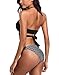 Brazilian cut two piece bathing suits feature halter bikini top, crisscross front details, adjustable spaghetti strap, tie at neck and back, give you perfect fit to your silhouette. Unremovable padding provide extra shape and support.