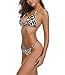 Brazilian cut fashion two piece bathing suits feature halter bikini top, crisscross front details, adjustable spaghetti strap, tie at neck and back, give you perfect fit to your silhouette. Unremovable padding provide extra shape and support.