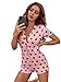 Features: polka dots, v neck, button front, short sleeve, lettuce trim, short length, one piece sleepwear, lounge romper