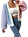 Features: colorblock, open front, ribbed knit, long lantern sleeve, drop shoulder, contrast trim, cropped length, regular fit