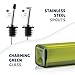 KEEP OLIVE OIL FRESH: Our 17 oz green glass oil dispenser comes in an opaque finish making it ideal for storing olive oil as it filters out strong UV lights that can affect preservation. Place any of the pourer spouts when using the bottle for everyday use, or seal it with the black cap and inner cork when storing spare oil or homemade sauces.