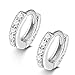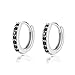 Sterling Silver CZ Hoop Earrings: Real 925 Sterling Silver, White Gold Plated, Nickel Free, Lead Free. Shiny Clear/Black Cubic Zirconia Stones Paved Along The Edge Of Your Ear, Sparking, Cute.