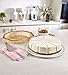 Turns out 10-1/4" diameter cake, cornbread or quick bread with indentations for 12 even slices.