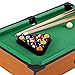 Package Includes: 1x billiard table, 15x colored balls, 1x cue ball, 2x billiard cues, 1x chalk, 1x triangle.